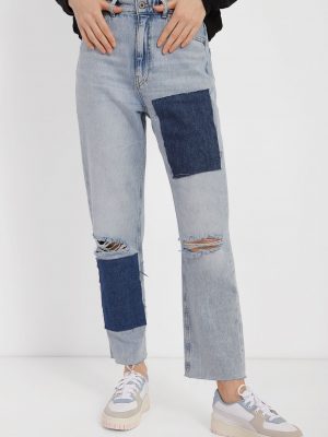 High-Cut Cropped Jeans with Dark Inserts – Light Blue
