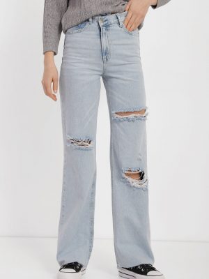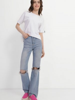 High-Waist Jeans with Ripped Knees – Blue