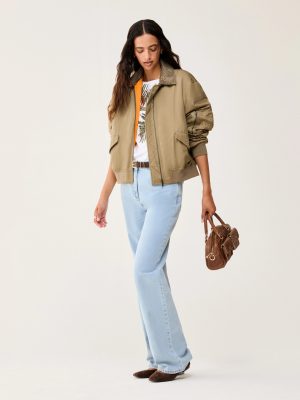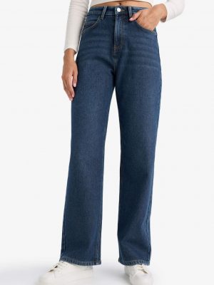 Features: Denim-look jersey finish; 5-pocket design; Mid-rise waist; Concealed zip and press-stud; Belt loops